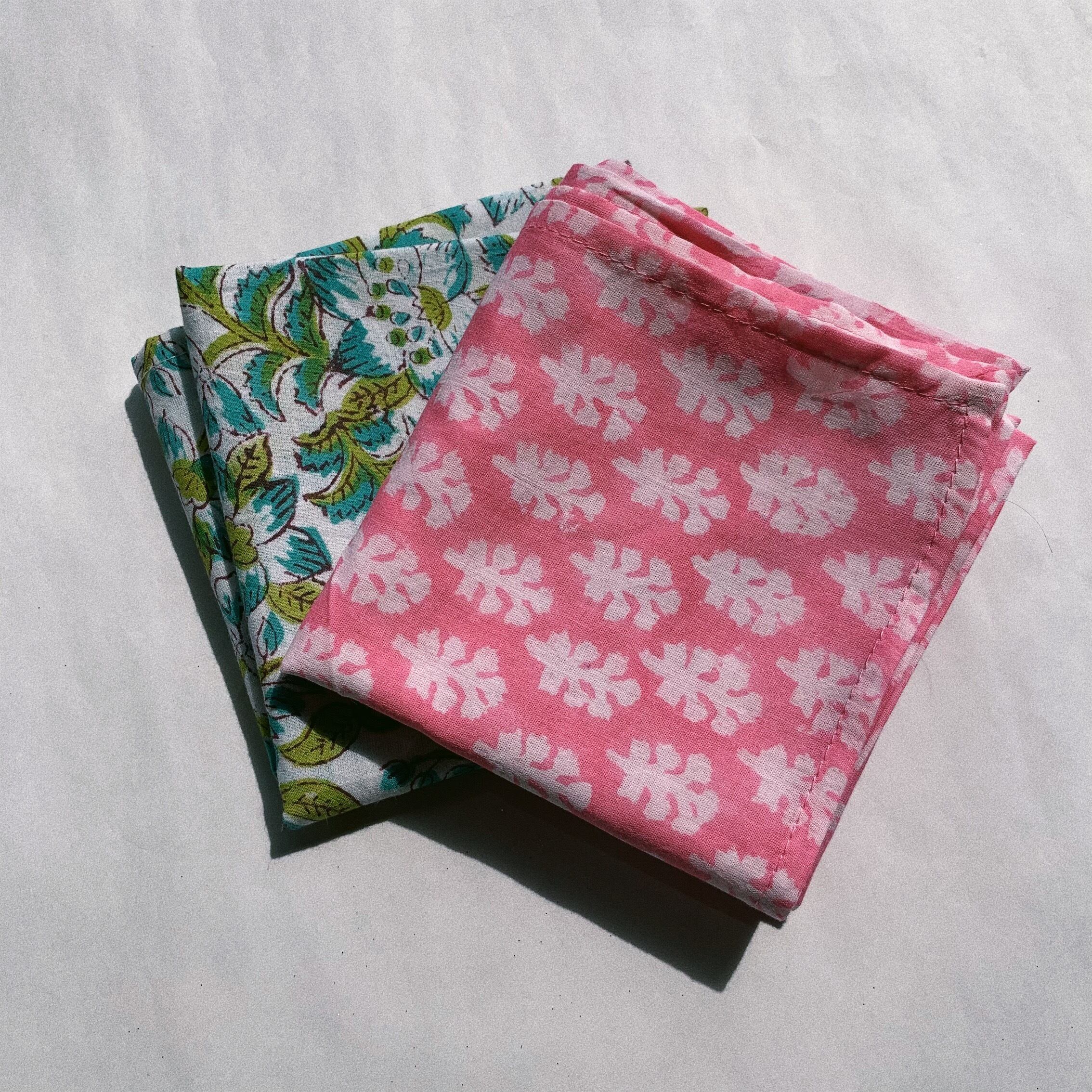 手彫りの木版を色ごとに布に直接押しつけ、その工程を重ねることで美しい柄が生まれます。