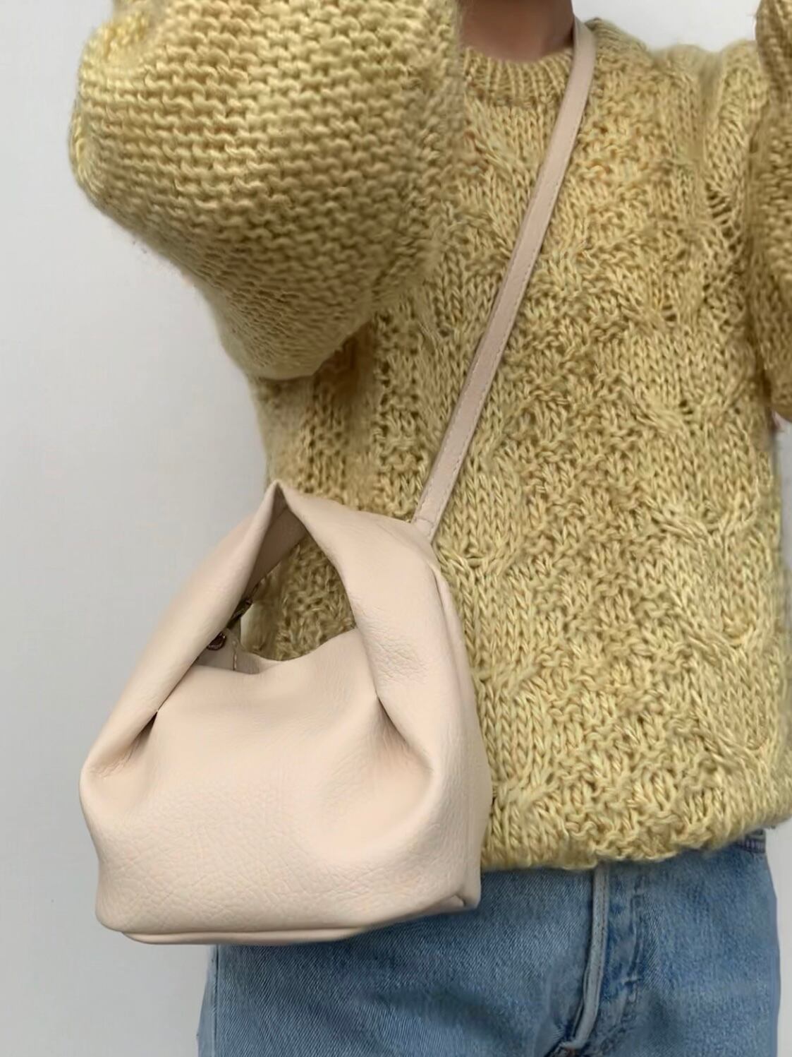 ショルダー紐付き SIZE/ 高さ 22.5㎝ 横幅 17㎝ マチ 9㎝ ※若干のずれが生じる場合がございます。 予めご了承下さい。 COLOR/ クリーム ※ ご購入前に一度、特定商取引法に基づく表記のページをご覧ください。