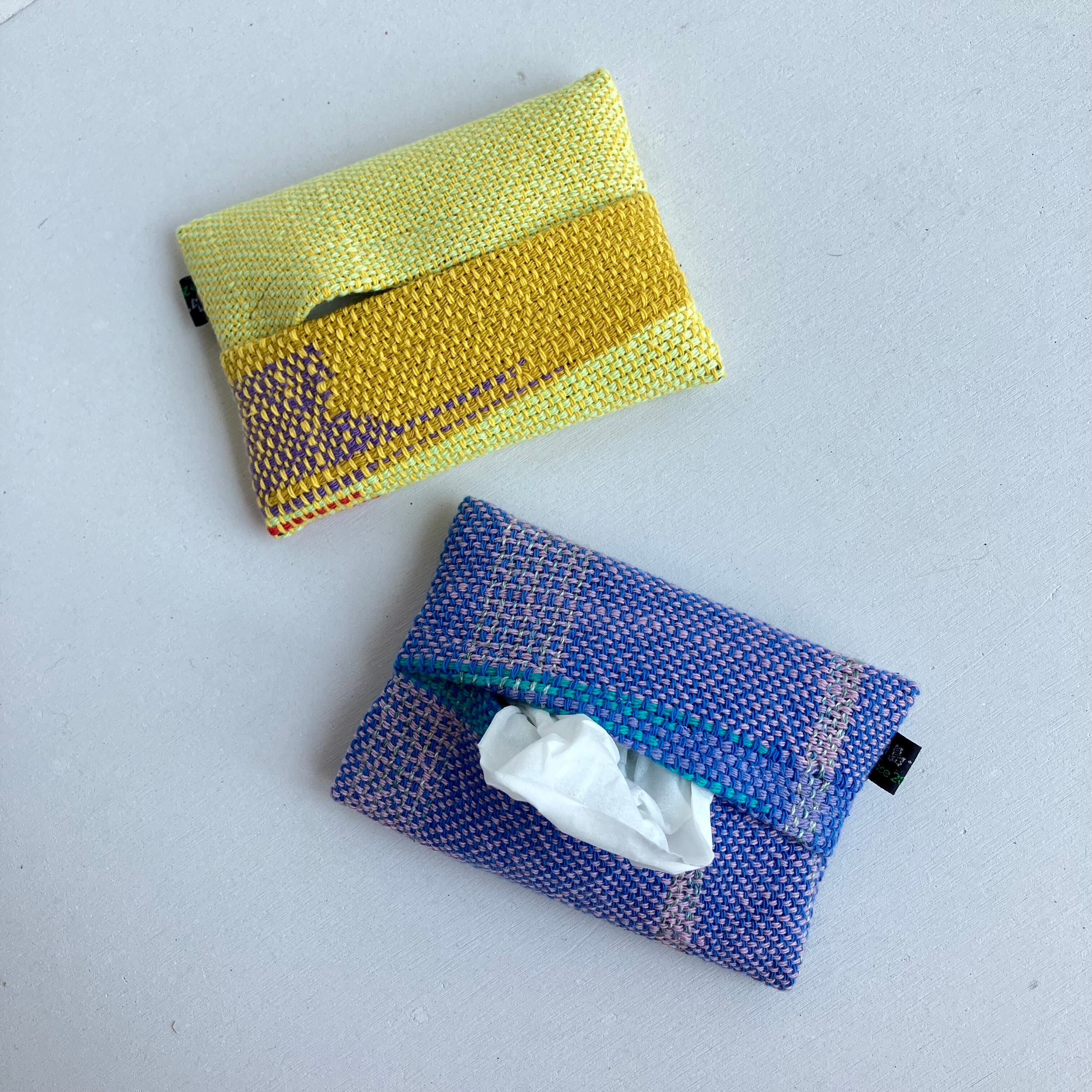 さをり織で作られたティッシュケース